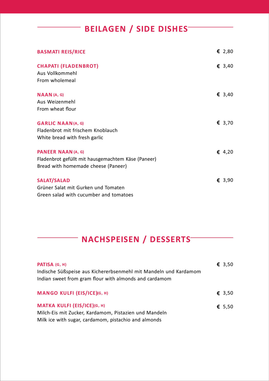 Für unsere Naschkasten hält die Speisekarte unseres indischen Restaurants New Namastey India in Linz ein paar besondere Überraschungen parat. Patisa, eine indische Süßspeise aus Kichererbsenmehl mit Mandeln und Kardamom, Mango-Kulfi und Matka-Kulfi (Hausgemachtes Milch-Eis mit Zucker, Kardamom, Pistazien und Mandeln) bringen Ihren Gaumen zum Abschluss noch einmal so richtig ins Schwärmen.