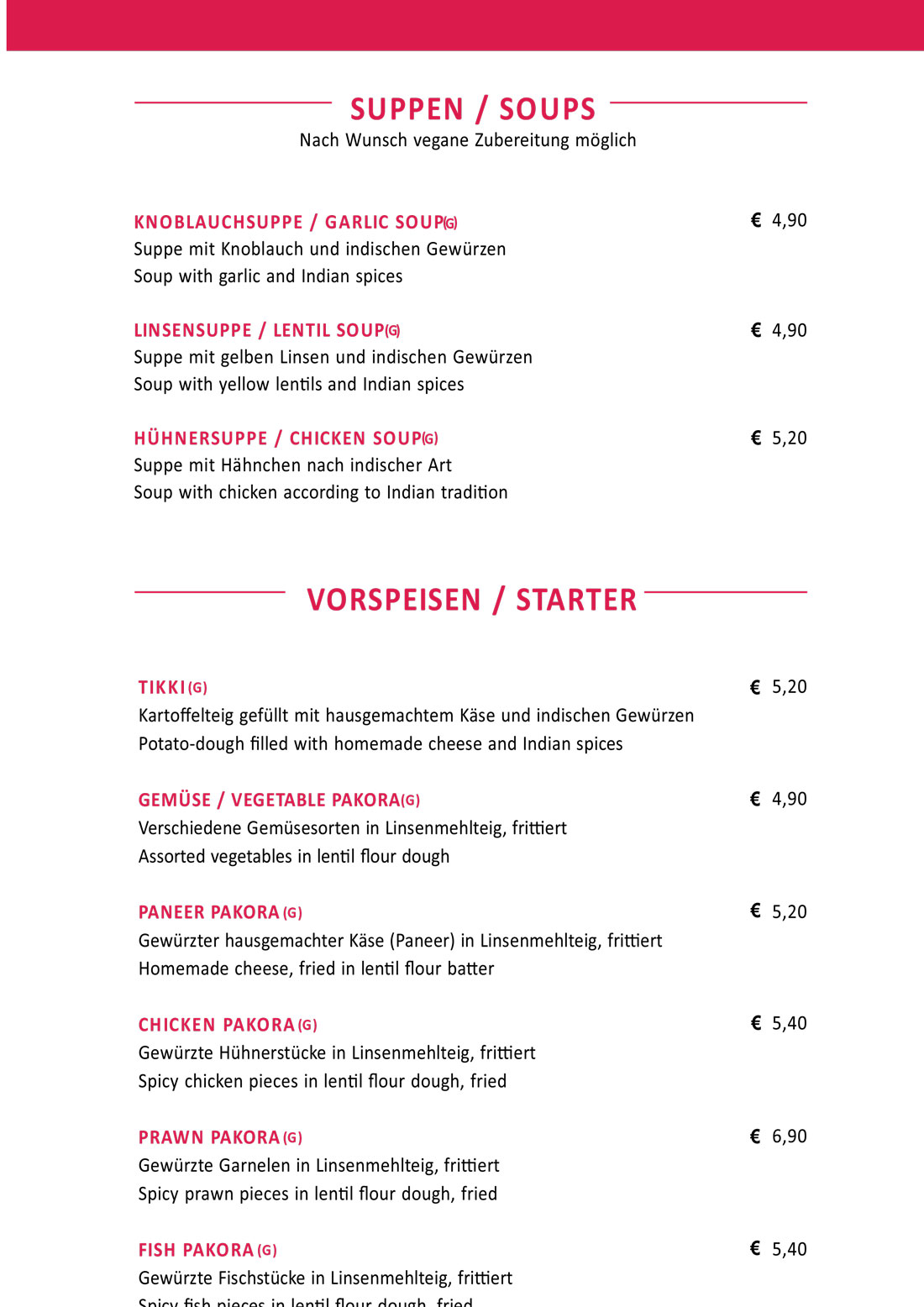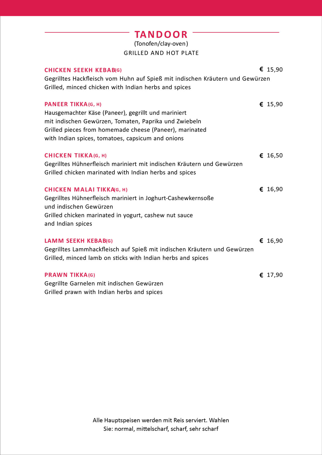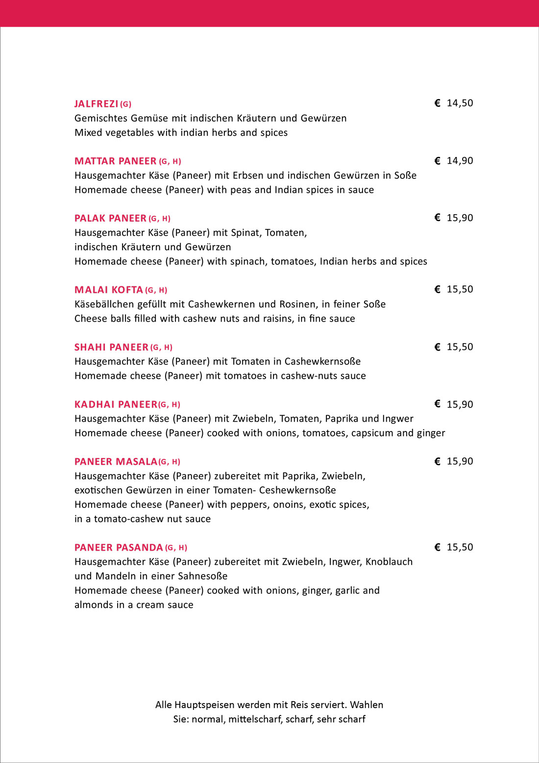 Speisekarte - New Namastey India