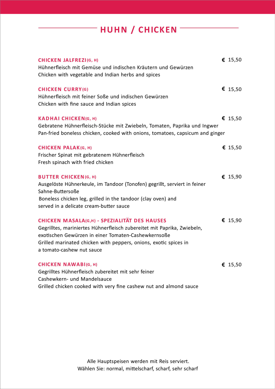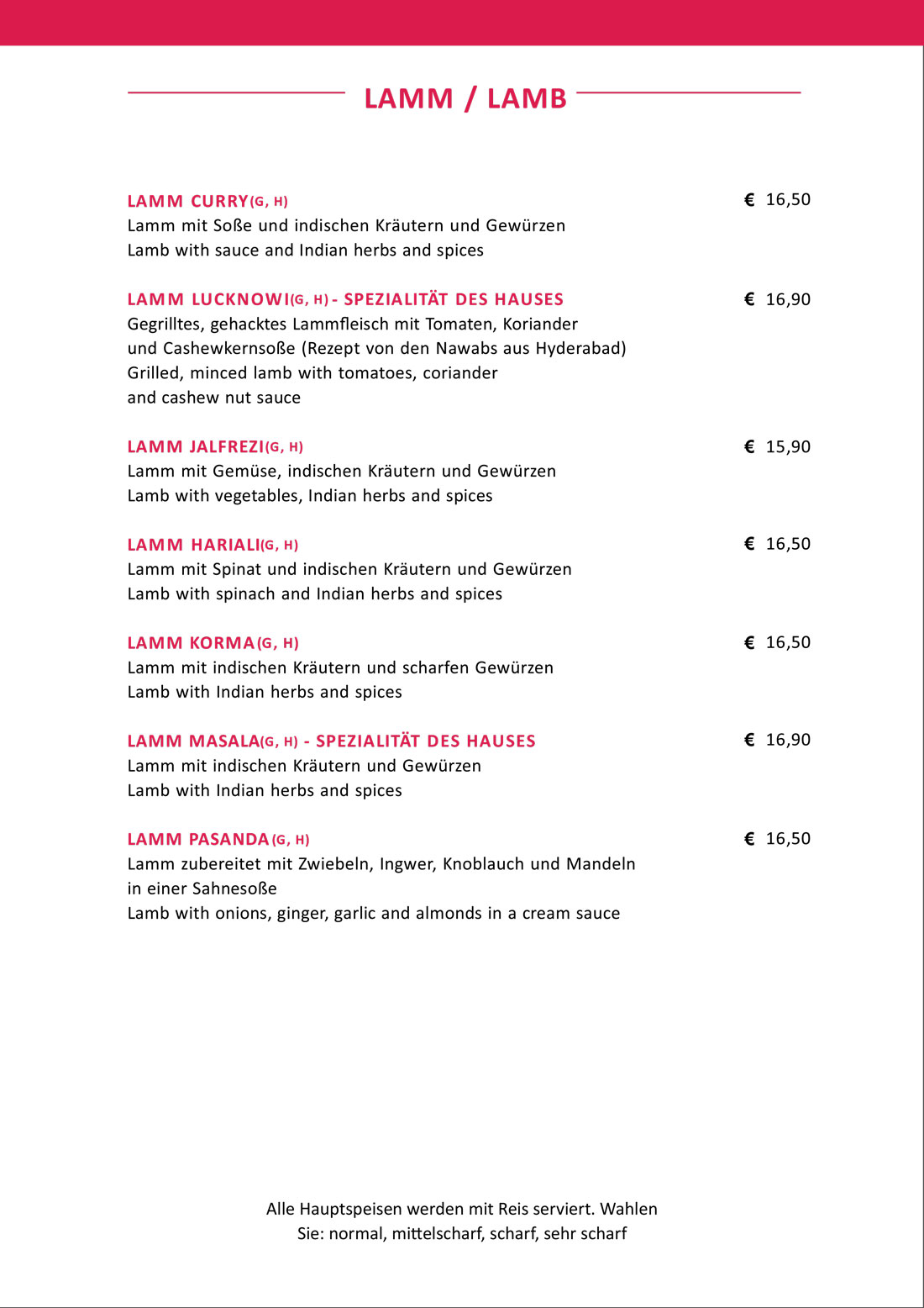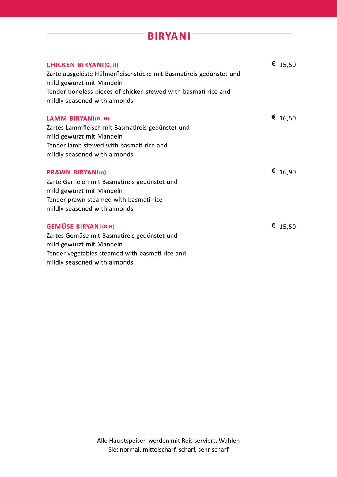 Speisekarte - New Namastey India